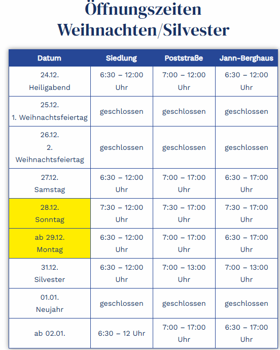 Betriebsferien 2026
